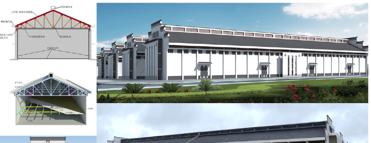 該倉屋頂采用鋼屋架和組合樓板形成雙層屋面,墻體和屋頂采用現澆鋼筋混凝土,氣密性好;把“預制裝配式”和“現澆整體式” 融合一體,成為目前已經(jīng)建造實(shí)施的唯一的裝配整體式平房倉。