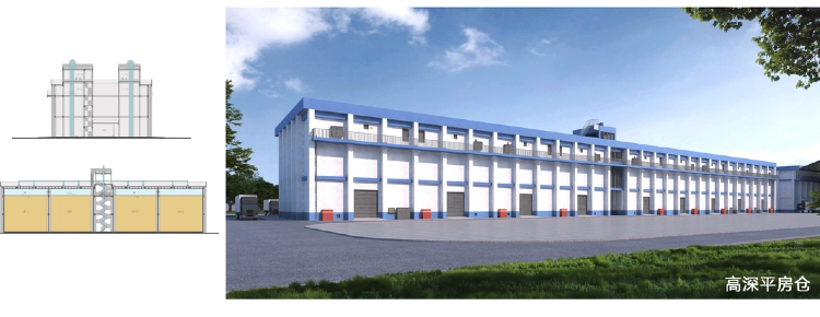 高深平房倉:采用12米高裝糧線(xiàn)、現澆鋼筋混凝土墻體、裝配式空心樓蓋、高強鋼筋、機械化進(jìn)糧等創(chuàng )新措施有效提高土地資源利用率,減少建設工期,提高糧食入庫效率,提高倉儲管理的科學(xué)性和規范性并實(shí)現優(yōu)糧優(yōu)儲。