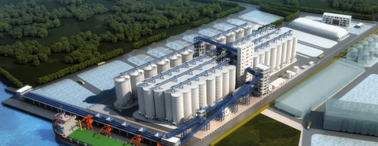 項目占地面積156畝;建設倉容規模51.6萬(wàn)噸,其中:立筒倉40.6萬(wàn)噸,淺圓倉11萬(wàn)噸;土地利用率及機械自動(dòng)化程度高,具備糧食動(dòng)態(tài)儲備、糧食物流中轉功能,可實(shí)現裝卸船、裝卸車(chē)作業(yè)。